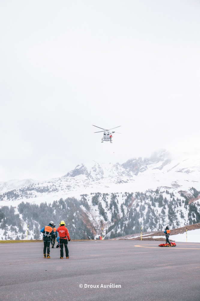 Ces photos capturent un entraînement de sauvetage mené par le groupe SAF Hélicoptères à Courchevel. On y voit les équipes en action, effectuant des simulations de secours en montagne, avec une coordination parfaite entre les équipes au sol et les hélicoptères.